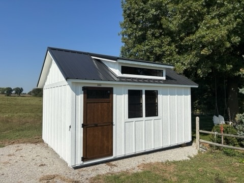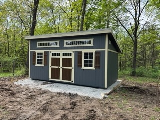 Every building is custom-built in our North Central Missouri shop using quality materials and careful craftsmanship. Whether you need a backyard shed, a lofted garage, or a cozy cabin, we’ll help you choose the right size, options, and colors—then deliver and set it exactly where you want it.